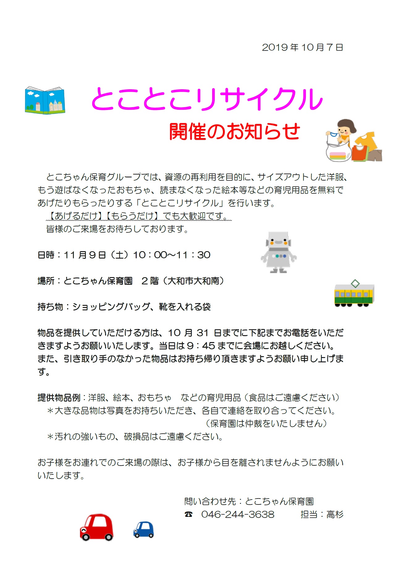 とことこリサイクル開催のお知らせ!!