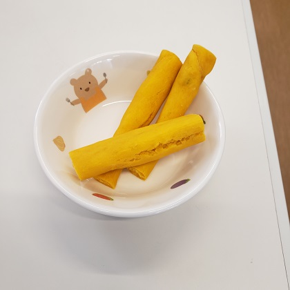 ある日のおやつ「かぼちゃ棒」です。(とこちゃん全園同じメニュー)