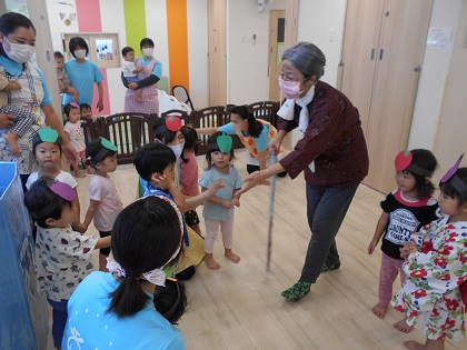 なんと!とこちゃん保育園の夏祭りに、もったいないばあさんがやってきました。