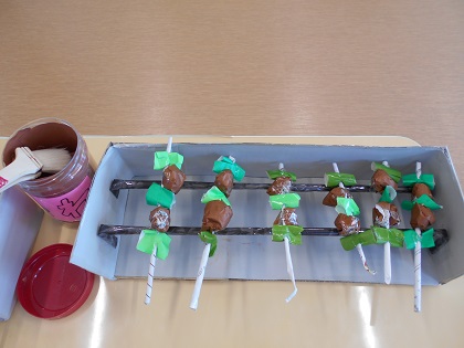 とこキッチンの調理員たちもこの日に向けた「お祭りランチ」を考案し、更には保育士のお手伝い(製作)もやってくれていました♪
