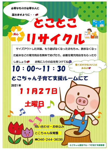 11月27日(土)とことこリサイクル~とこちゃん子育て支援ルーム~