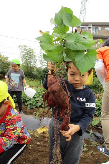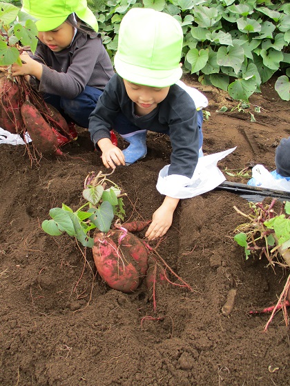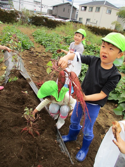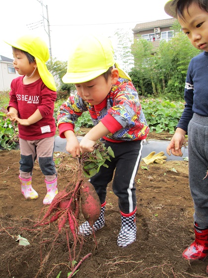 畑の山口さんに心からのお礼をお伝えし、翌日からおいもの料理や、おいもを使った造形あそびを楽しんでいます。