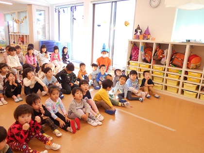 お兄さんお姉さんのクラスも、先生たちのハロウィン劇で開幕で~す♪