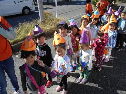 3クラス合同、2チームに分かれてハロウィンパレードに出発しました!