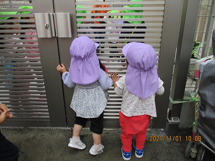 お兄さんお姉さんが公園に出かける様子が見えてお見送りしている二人です。