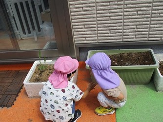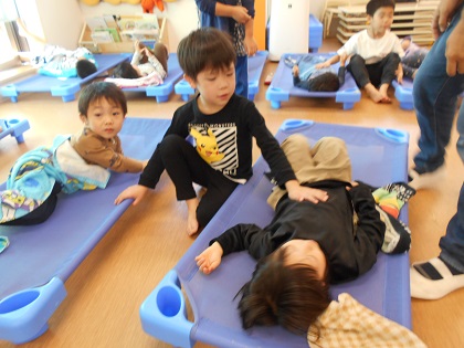 5歳児が4歳児を、4歳児が3歳児をとんとんすることもあります。