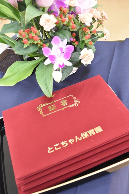 コロナの関係で当日は直接お祝いできないけれど、卒園式に向けた準備は、とこちゃん保育園の先生み~んなで行いました。