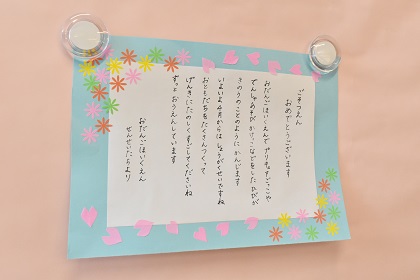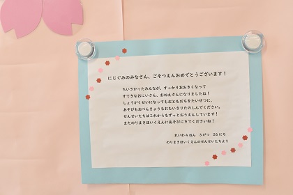 小さい頃過ごした子もいる小規模園からお祝いのメッセージが届きました。