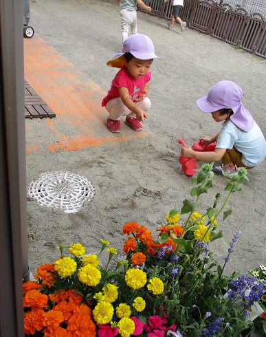 とこちゃん保育園, とこちゃん日記 お花いっぱい♪ お花を見つめる子どものおめめを見て癒されている今田です。 6月、とこちゃん保育園の園庭はお花がいっぱいでした♪ 自然とお花のそばで遊ぶ姿がなんともかわいいです💛 そーっと触れるその指先も可愛らしいですね~ 子どもたちの元気な声、かわいいまなざしをもらって、お花さんたちも嬉しいでしょうね♪ 子どもたちといっしょに過ごすお花たちも立派なとこちゃんっこです🌸 み~んななかよく大きくなあれ♪ 関連記事いいところへ行ってきました!入園準備手作りなんです!!【2023年11月】食育だよりとったとったとったった~🍆✨おだんごさんのお弁当給食♪ 2022-09-16 | Posted in とこちゃん保育園, とこちゃん日記 | No Comments » < 今日のお楽しみは・・・? 歯をみがきましょう♪シュッシュッシュッ >