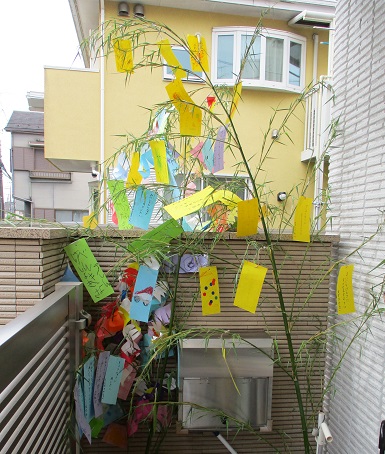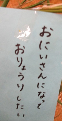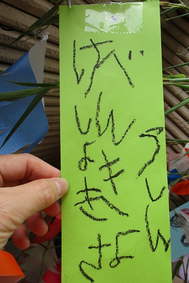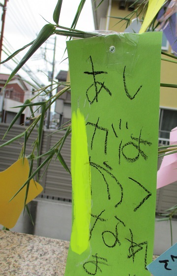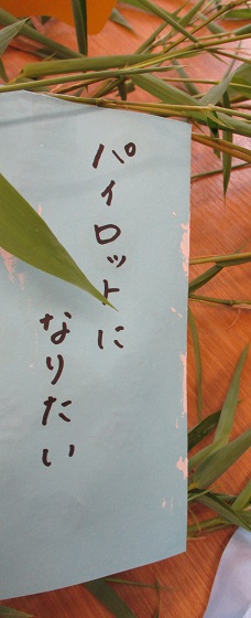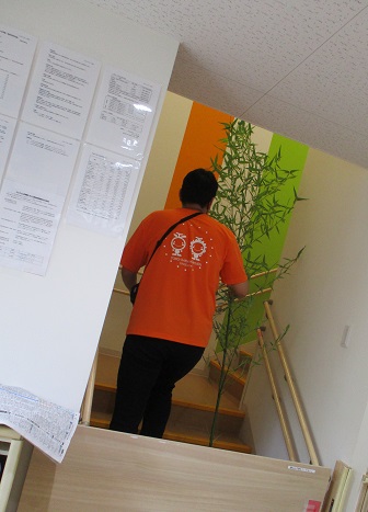 おやおや、けいた先生が大きな笹の葉を持って2階へ行きましたよ。