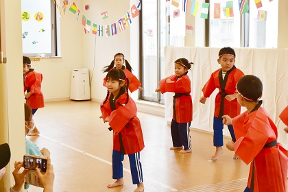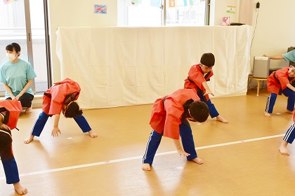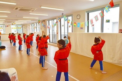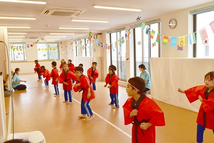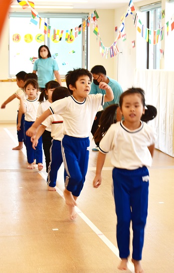 感染対策のため、クラスごとに保育室内でのミニ運動会となりました。
