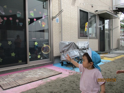 この時期の子どもたちにとっては、しゃぼんだまはまだちょっぴり不思議な存在です。