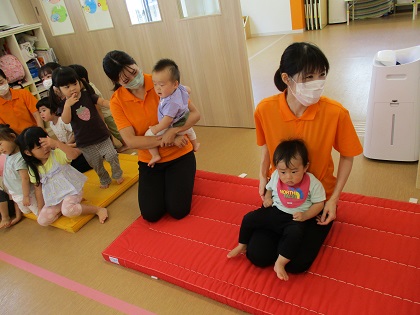 乳児クラスのお友だちは少し後ろの方から参加することにしました。