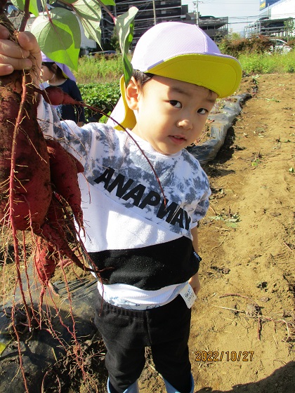 初めてのおいもほりでドキドキしていたようですが