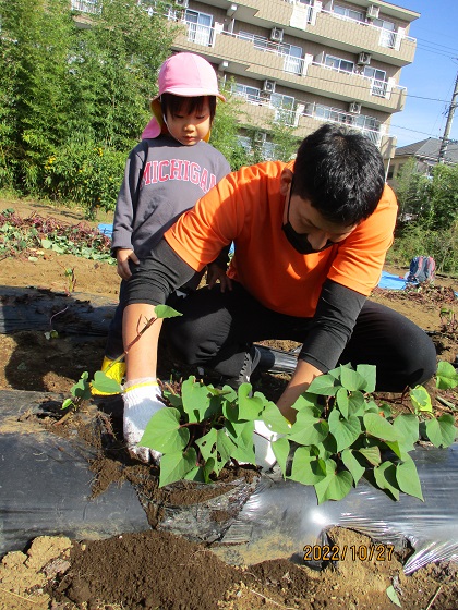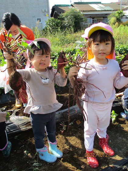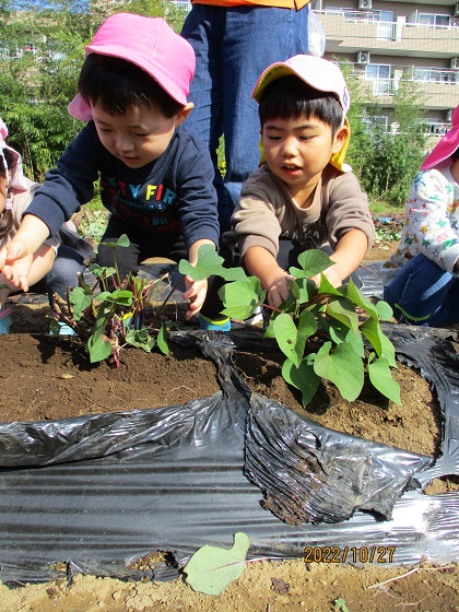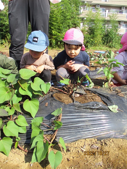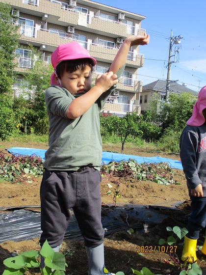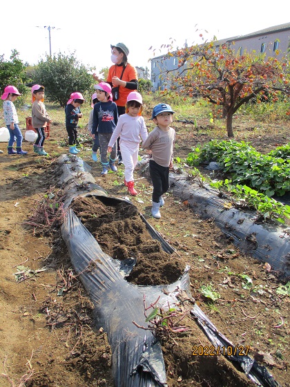とこちゃんの食育, とこちゃん保育園, とこちゃん日記 おいもほり②(とこちゃん保育園) おいもほり経験者が多いクラスは余裕の表情で畑に到着!! でもやっぱりちょっぴりドキドキ☆ けいた先生が掘りやすいように土をほぐしてくれています。 がんばろう♪ よーし! 掘れた~~~(^^)/ どの子もとっても意欲的! 「意欲」をはぐくむ 愛情いもほりです💛 ③へつづく 関連記事赤い帽子⭐白いおひげ🎅ひなまちゅり~?入園説明会の補足oh! TOMATO( ゚Д゚)?おいも♪とこちゃん保育園「勤労感謝の日」と「おべんとう給食🍱」 2022-11-28 | Posted in とこちゃんの食育, とこちゃん保育園, とこちゃん日記 | No Comments » < おいもほり①(とこちゃん保育園) おいもほり③(とこちゃん保育園) >