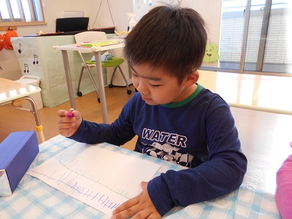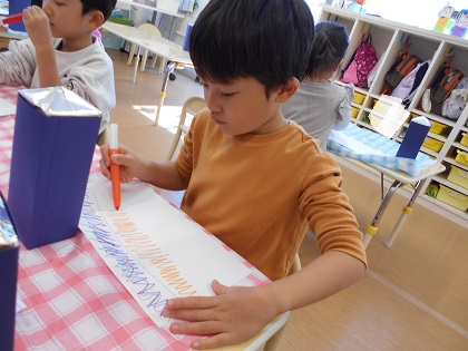 年長さんは万華鏡の模様を自分で描きました。