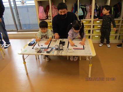 今年もとこちゃん保育グループ各園で書初めあそびを行いました。