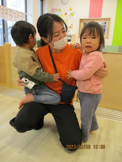 ・・・?でも、泣くこともなくみんなで豆まきができました✨