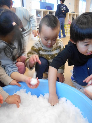 あっという間に積もりましたが、しんしんと降り続けていたので外で雪遊びができずにいると・・