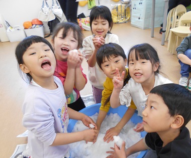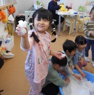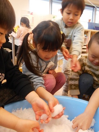 園庭の小さな雪だるまが、そんなみんなを笑顔で見守っていてくれていました♡