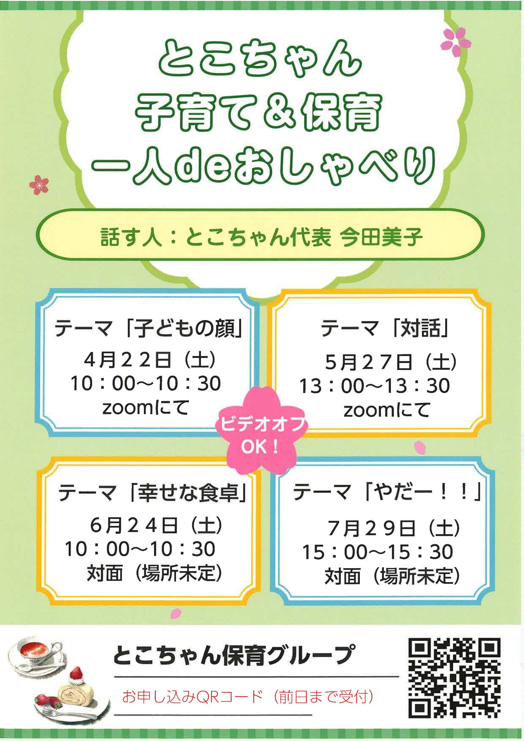 4月から月1回のペースで保育や子育てについてゆるくおしゃべりします。