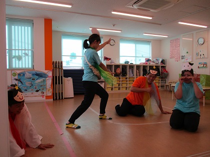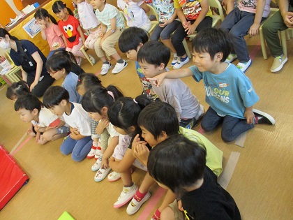 ナレーションを聞きながら、七夕のお話の世界に入っていくみんな。
