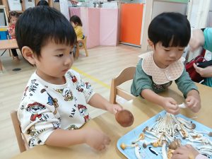 食育では様々なキノコに触れたり匂いをかいでみようのコーナーを楽しみました♪