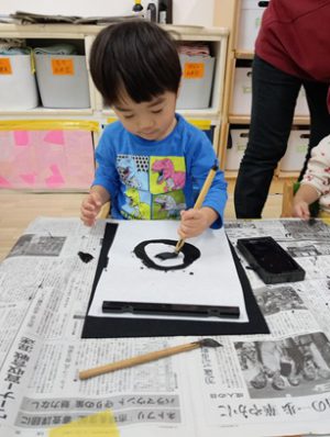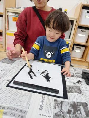 書き初めをしました。思い思いに表現することを楽しんでいます。
