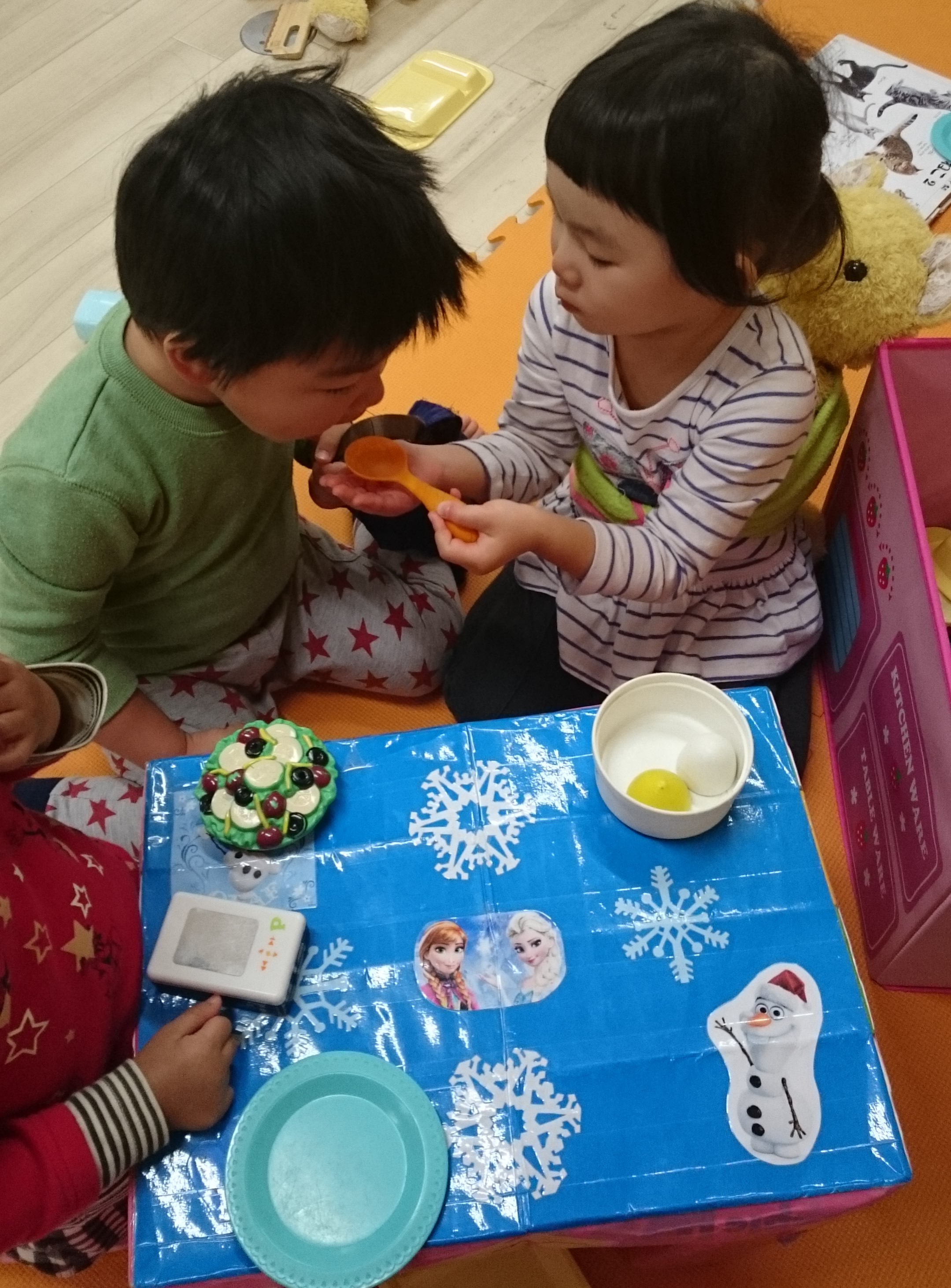 とこちゃん日記 なかよしさん♪ おままごとのワンシーン。 なかよしで穏やかな二人の姿にほっこりします♪ 関連記事おしゃべりとこちゃん on Saturday💝 & おしゃべりとこちゃん平日⭐ 11月開催!!お誕生日会あ~さ~は~♪?いよいよ12月手洗い・うがいリトミック♪ 2016-12-02 | Posted in とこちゃん日記 | No Comments » < Newとこちゃん保育園でも、やっぱりとこちゃん。 いよいよ12月 >