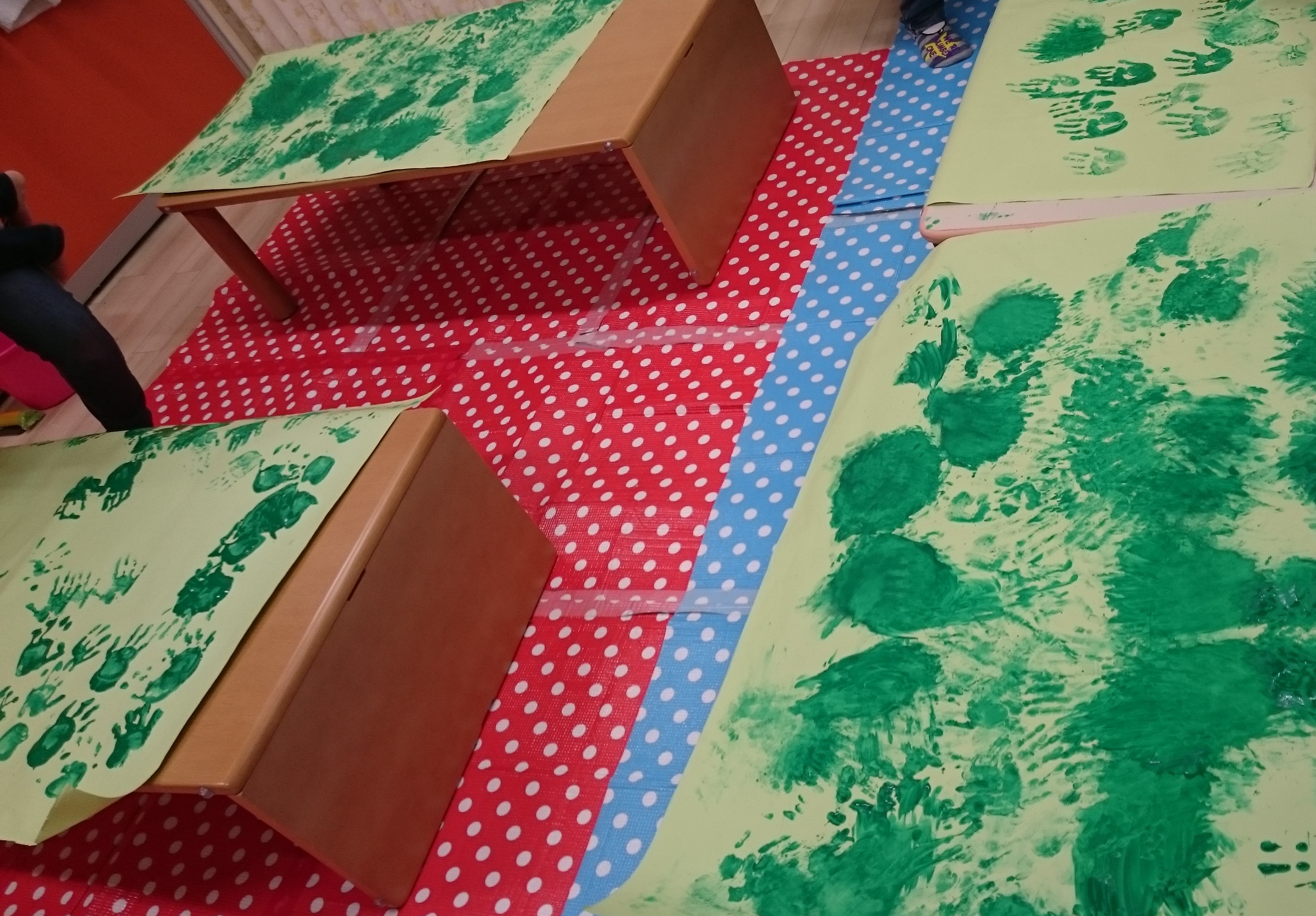 ダイナミックに絵の具あそびを楽しんでいました☆
