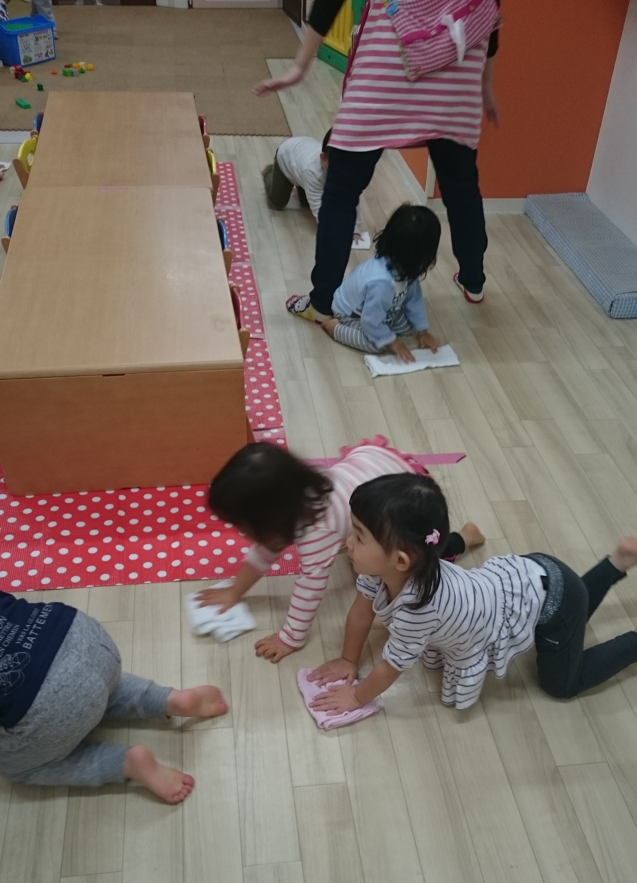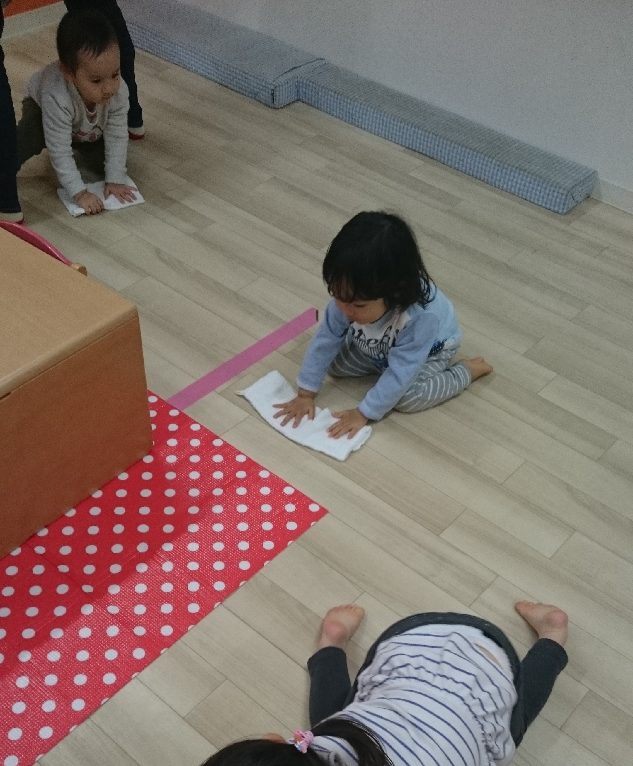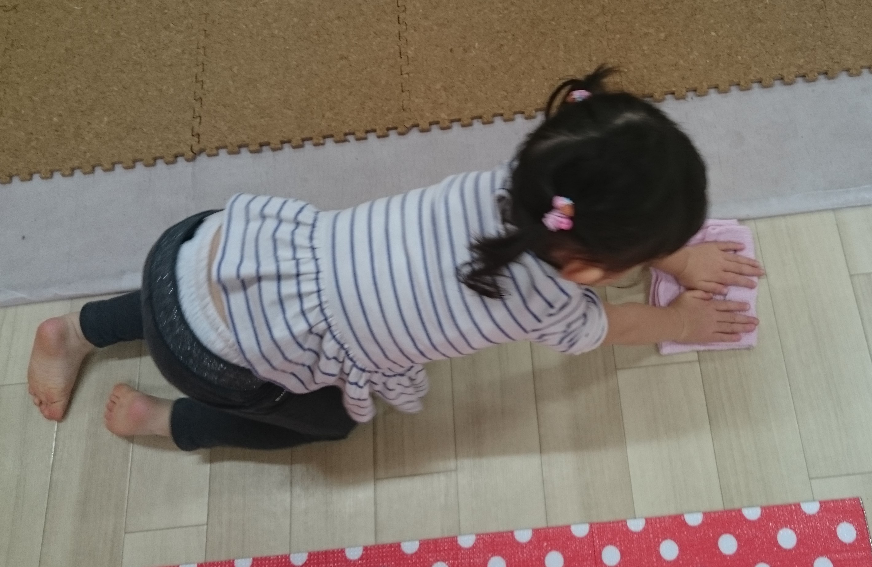 教えないのに雑巾がけができる1~2歳児☆素敵ですね☆