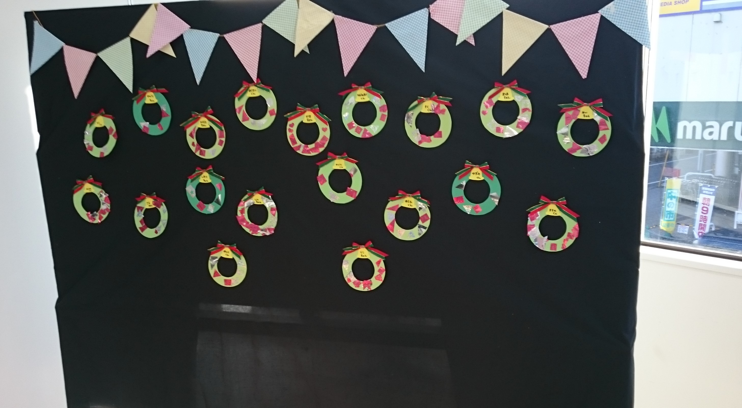 子どもたちが作ったリースを装飾しました☆