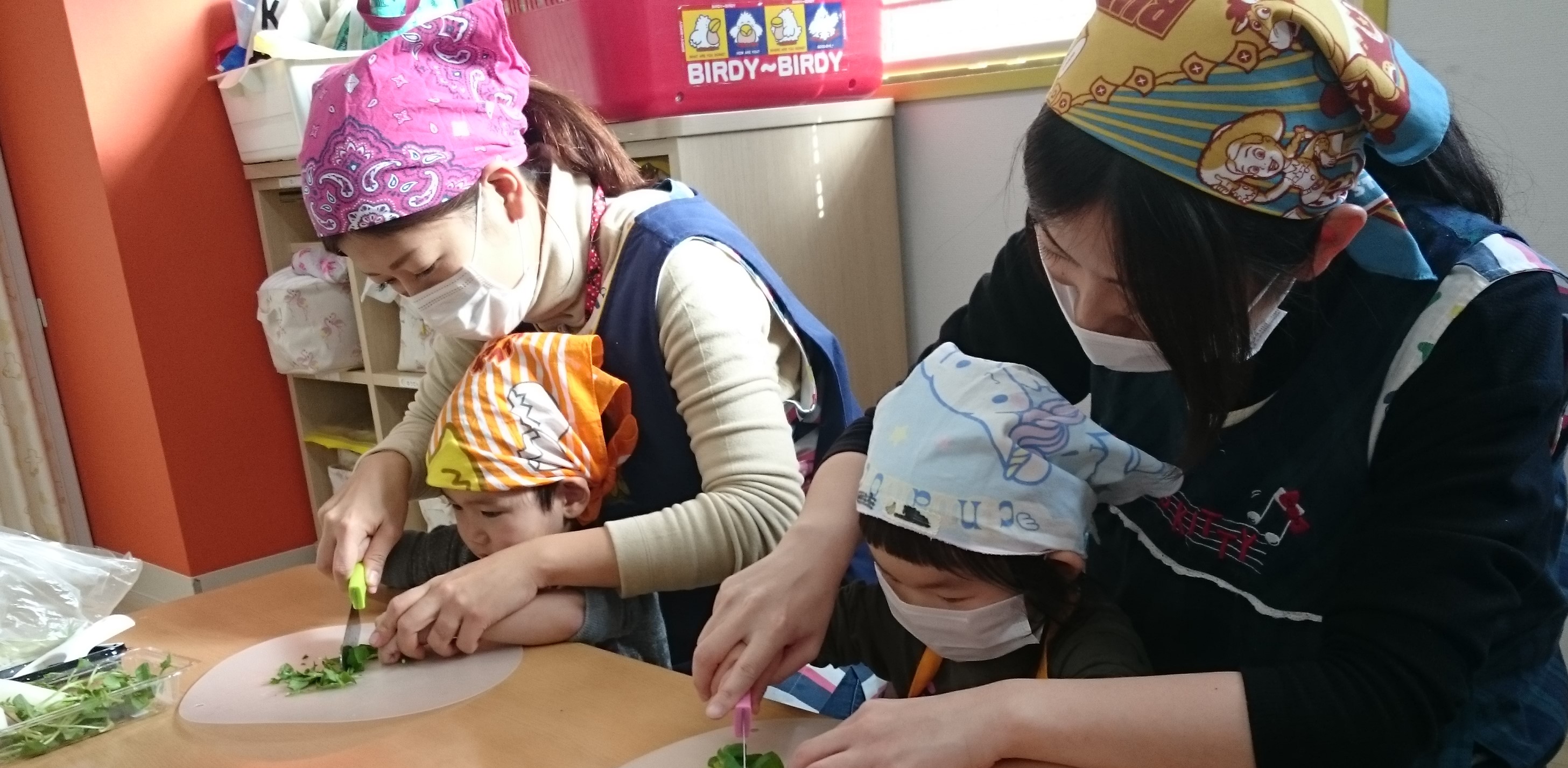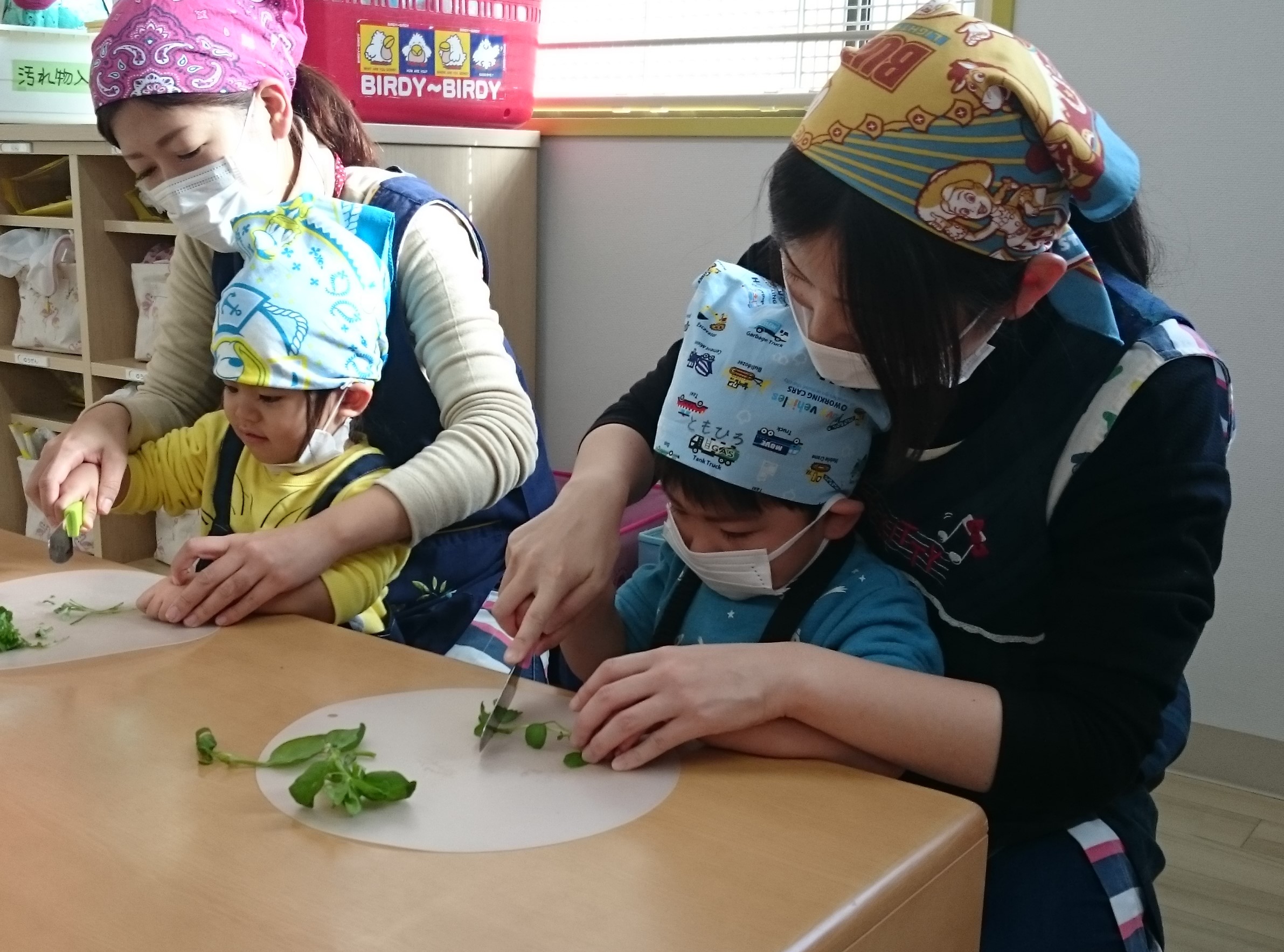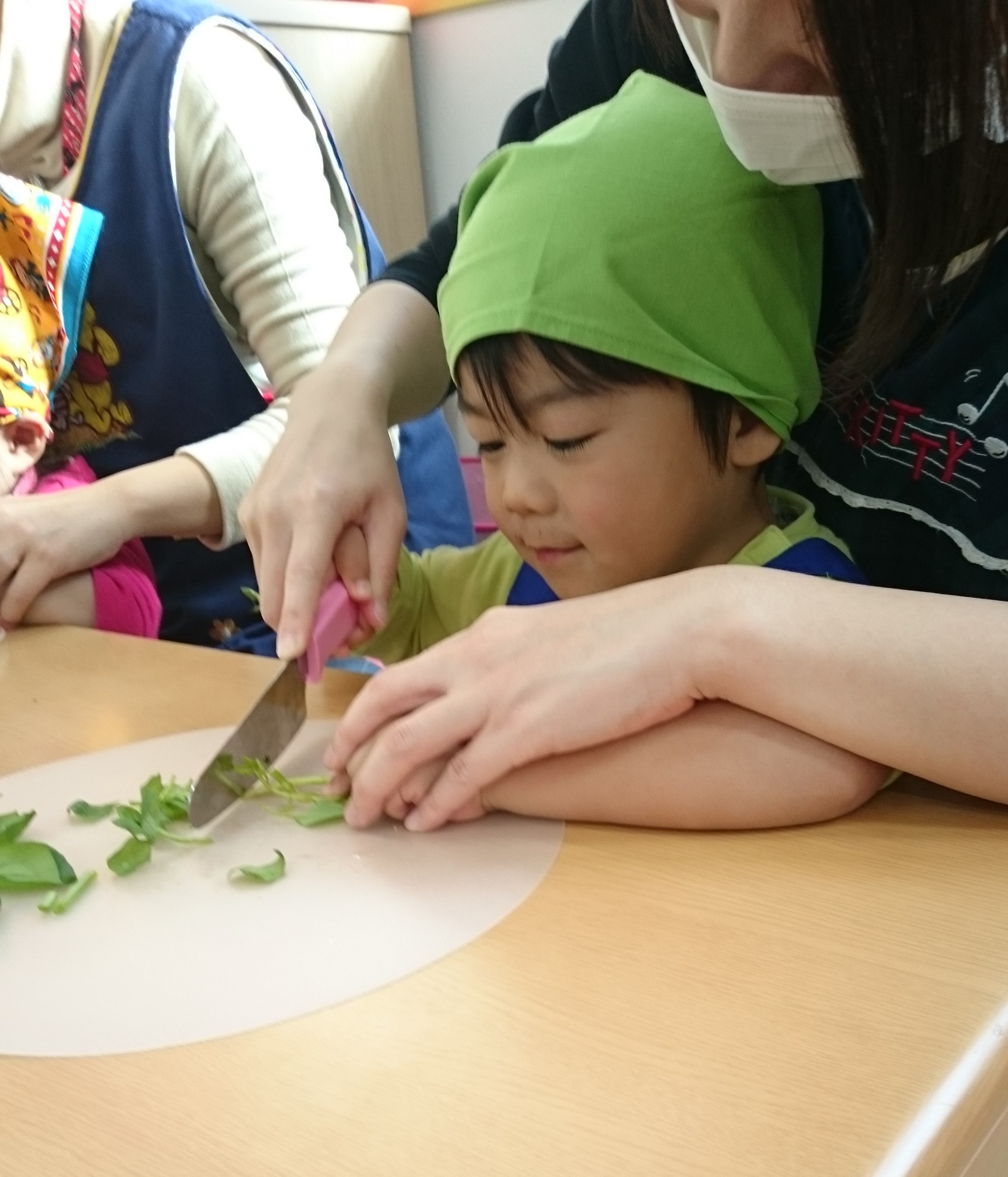 湧きあがる湯気から更に七草の香りが保育室じゅうに広がります。