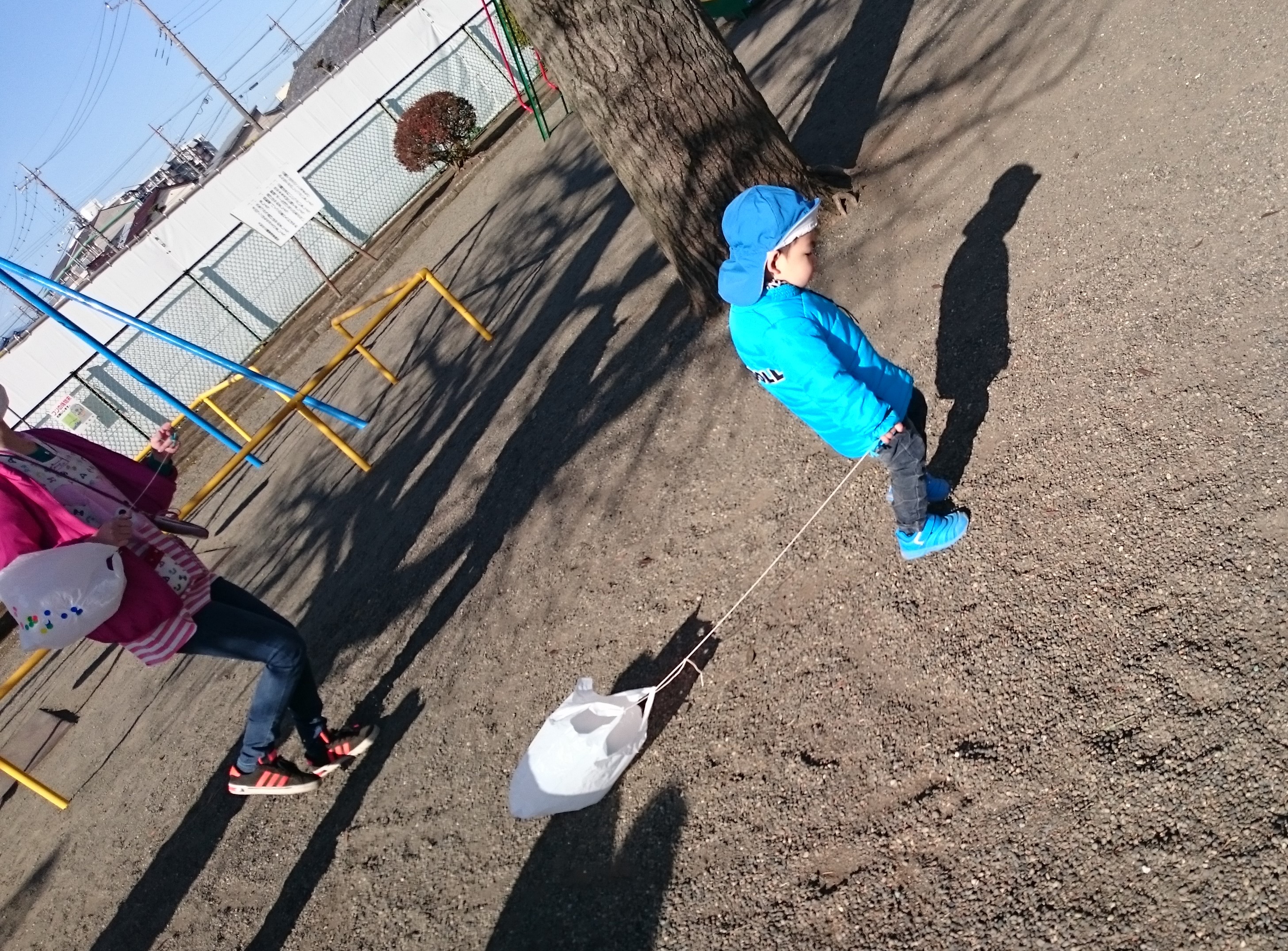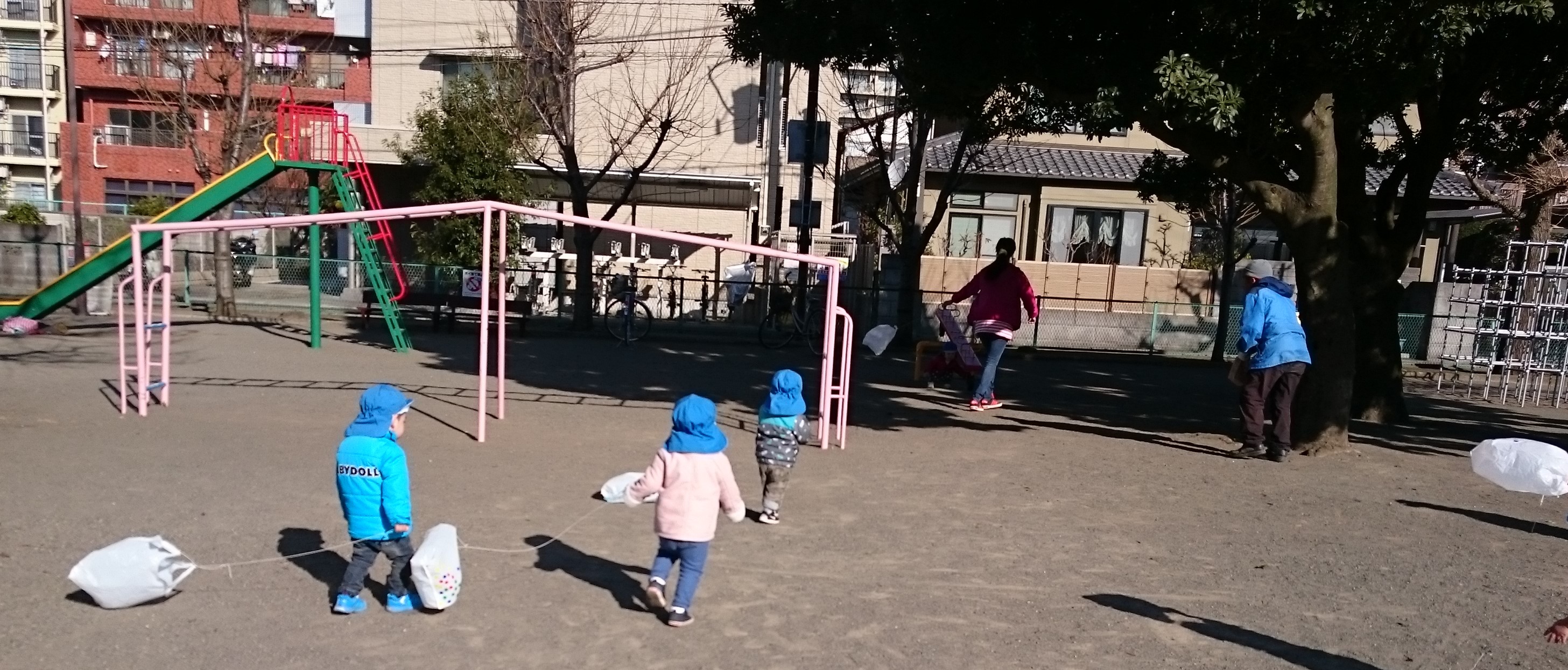 自分たちで作った凧を持っていざ公園へ!