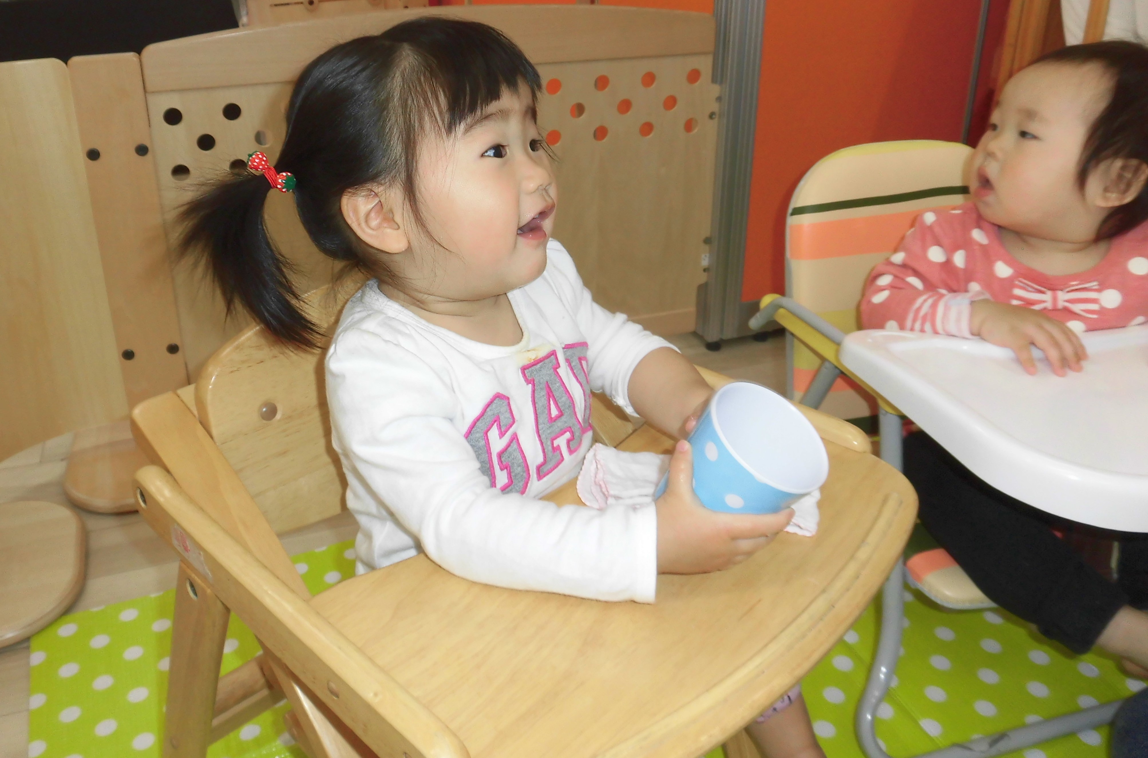 あたしたち0歳児クラスはいつもベビーチェアでお食事していますが