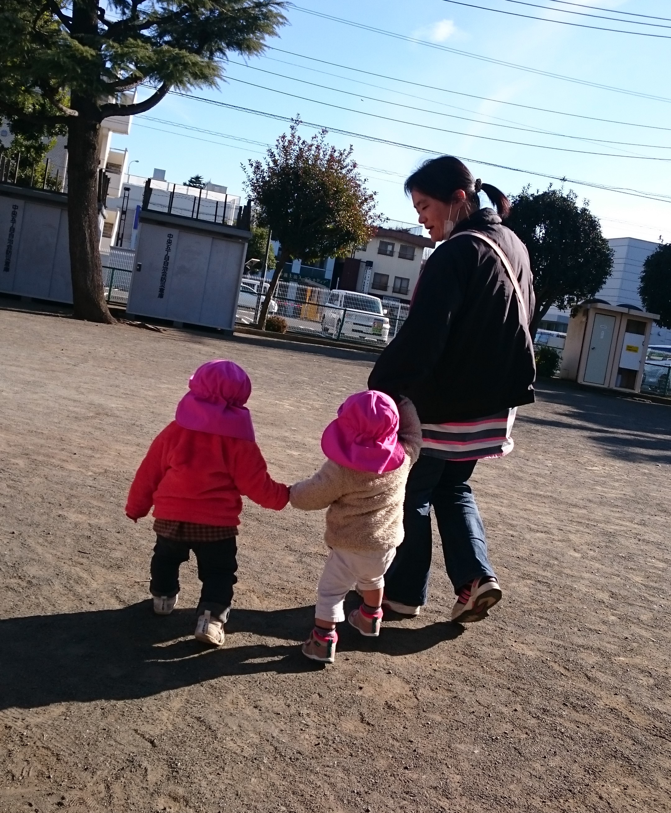 見てください!ちゃんとおててつないで歩けています!!