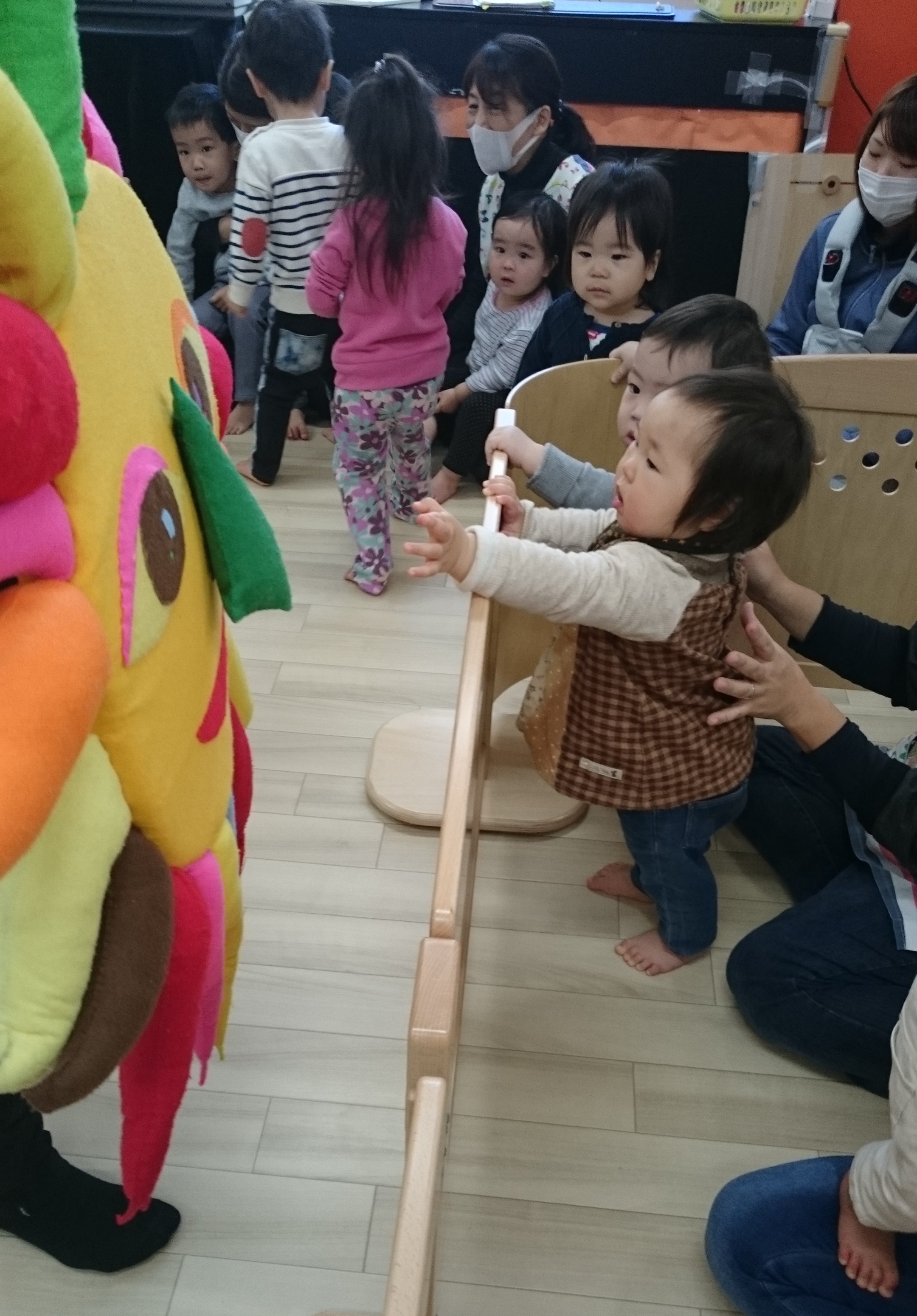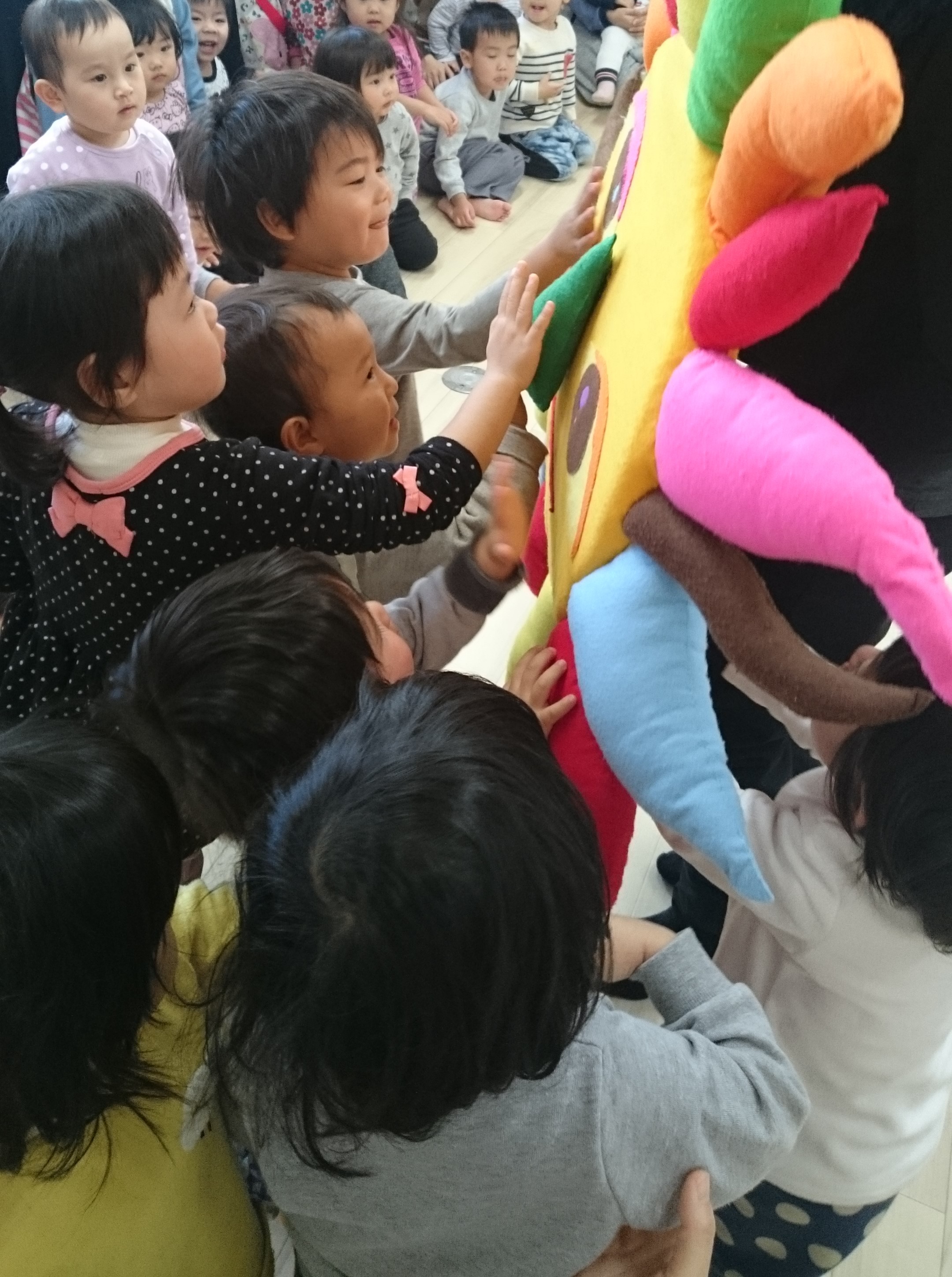 興味のある子は積極的におはなちゃんの近くへ歩み寄っていきます。