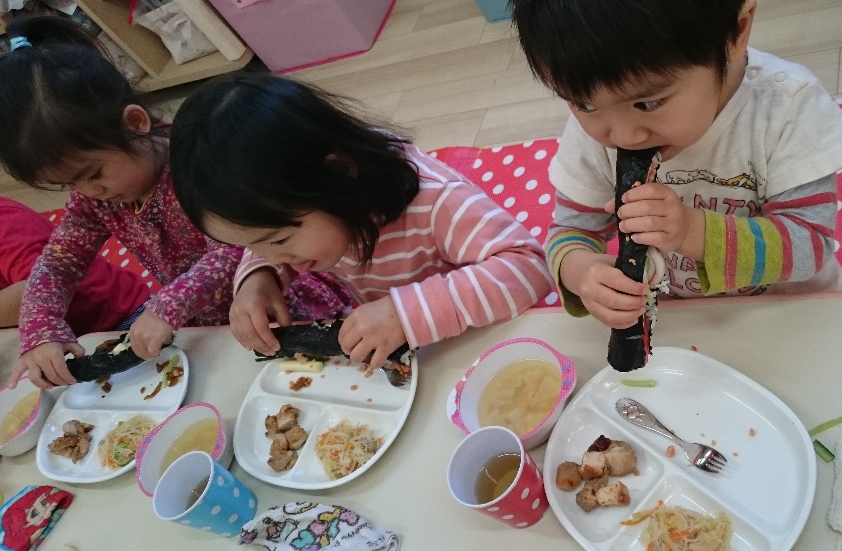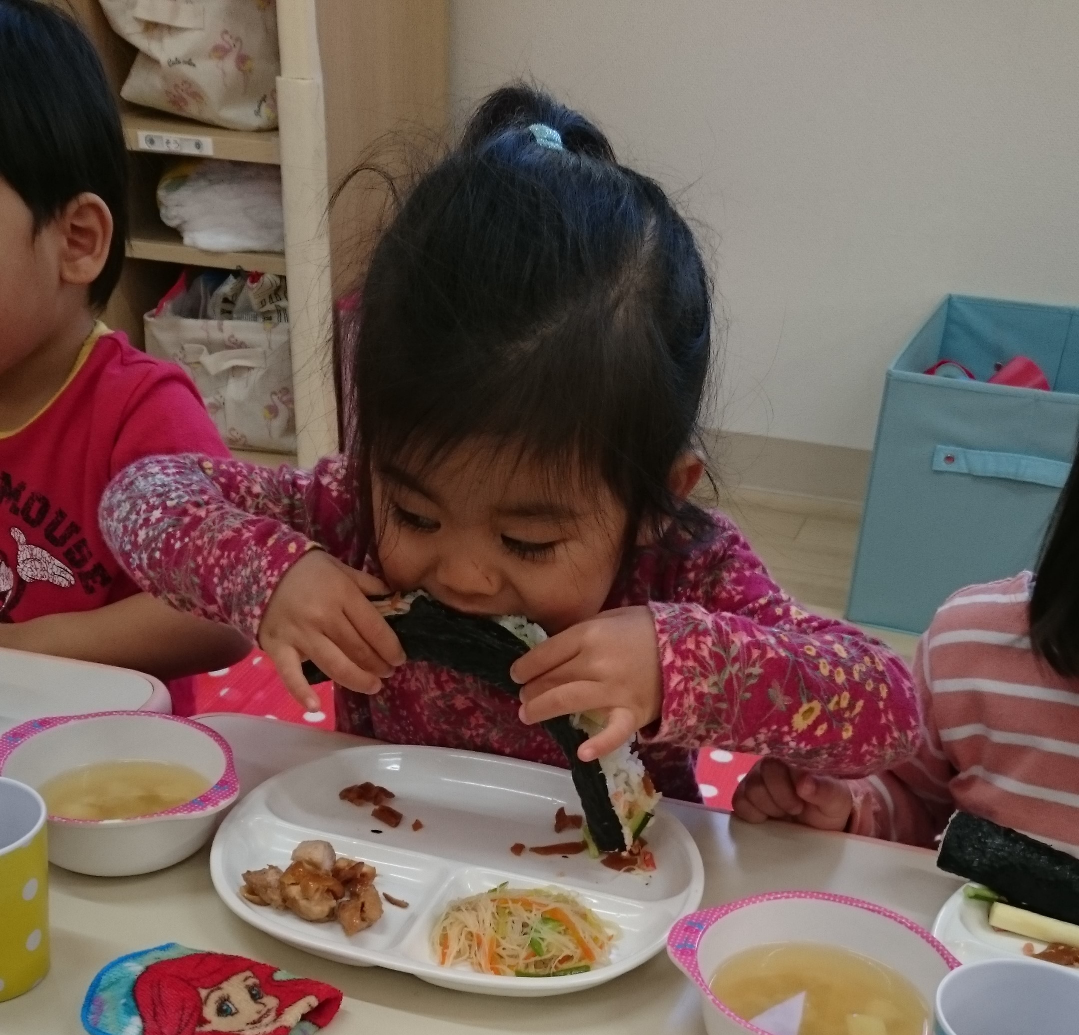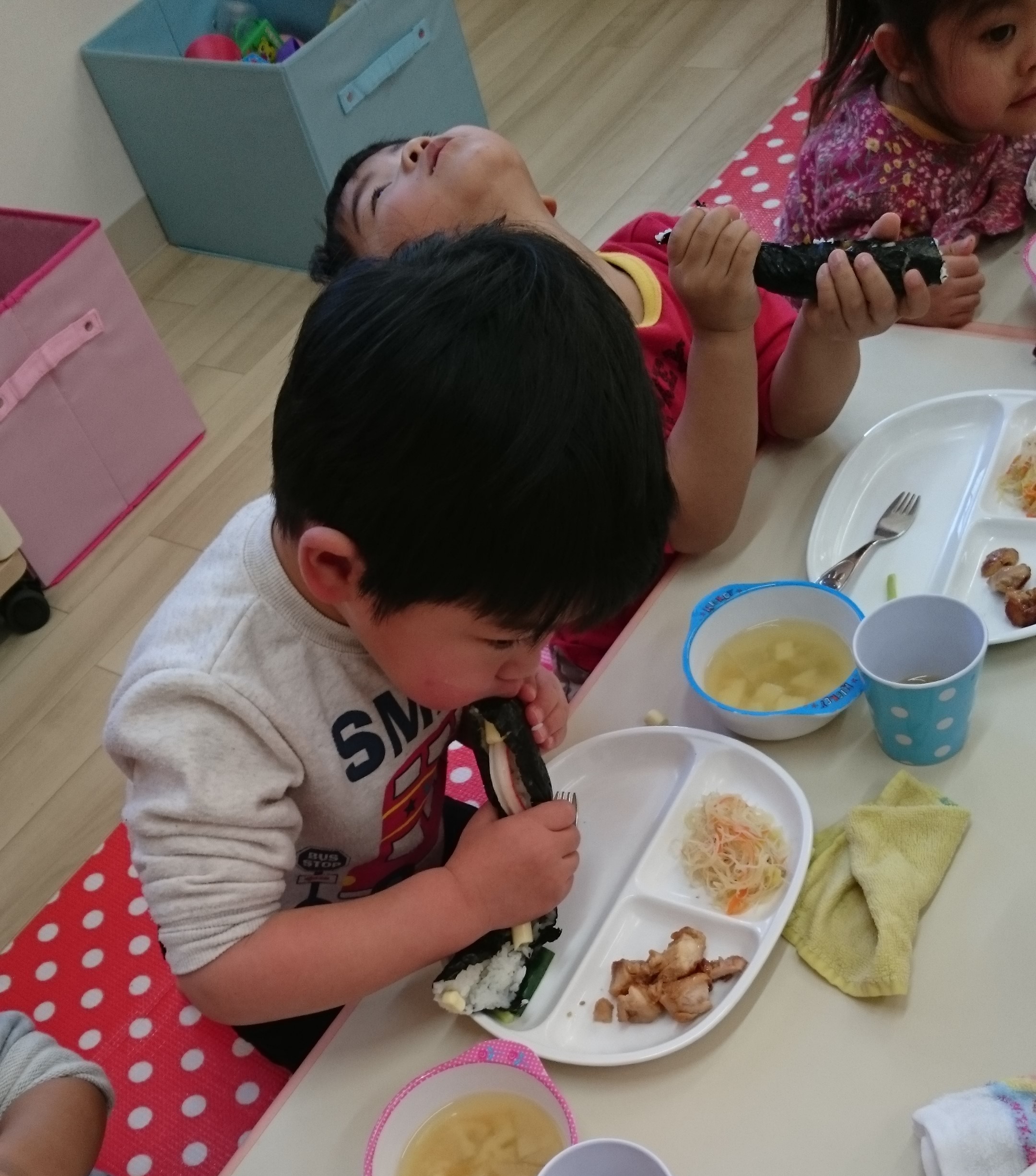 長いのりまきを自由にほおばる姿がかわいくてかわいくて