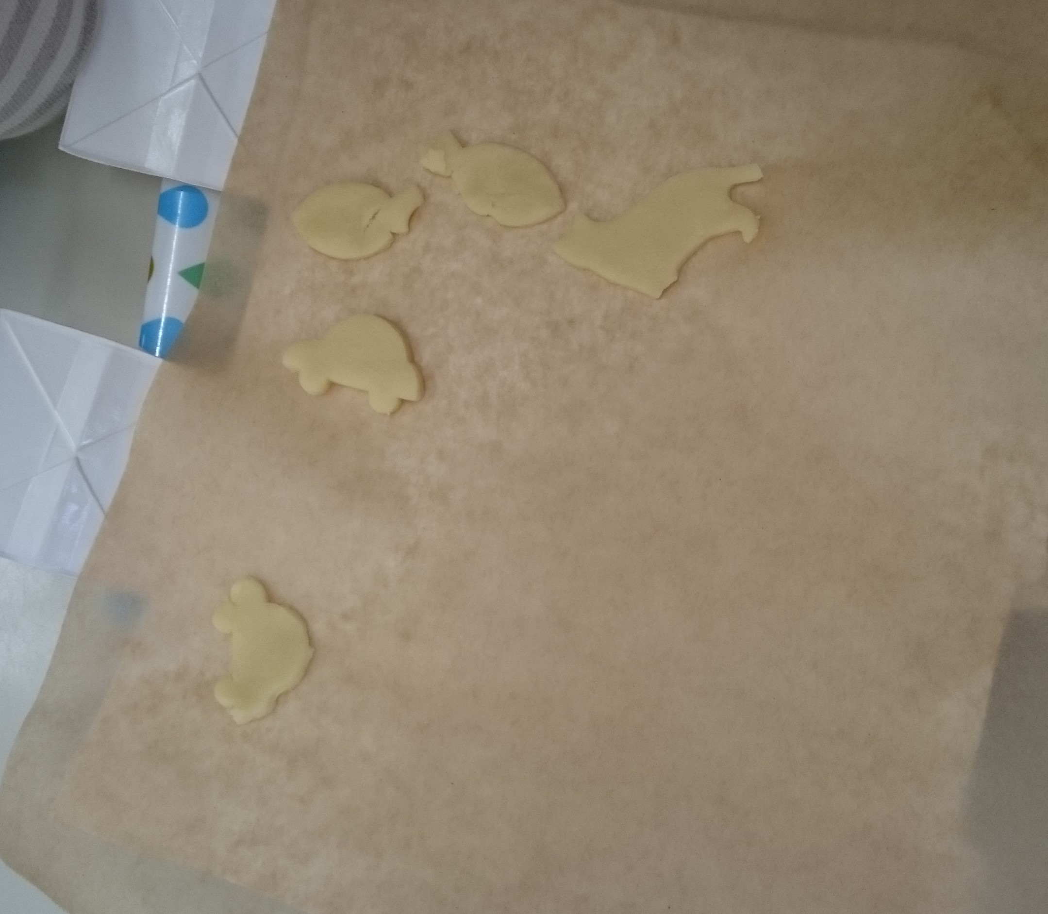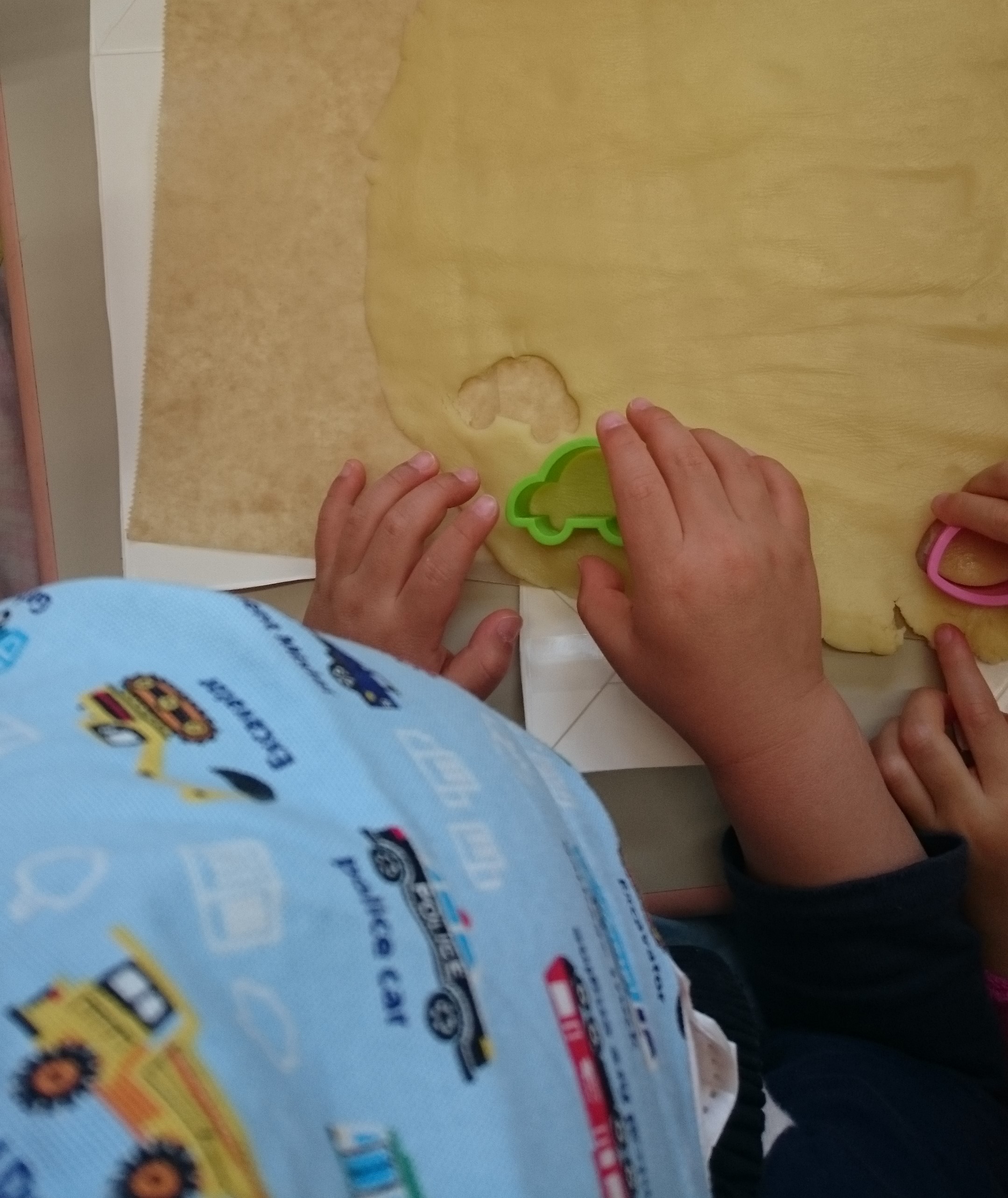 待ち時間は、クッキーの型を選んだり触ったりしているだけでもじゅうぶんに楽しいようです♪