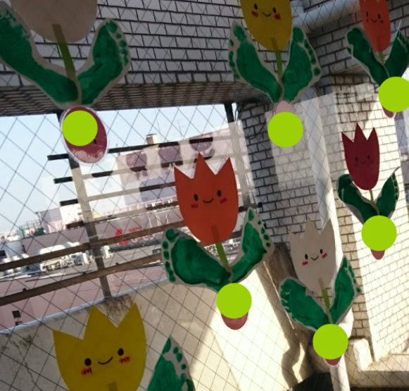 こちらは0歳児のかわいい手形で作ったたんぽぽです。