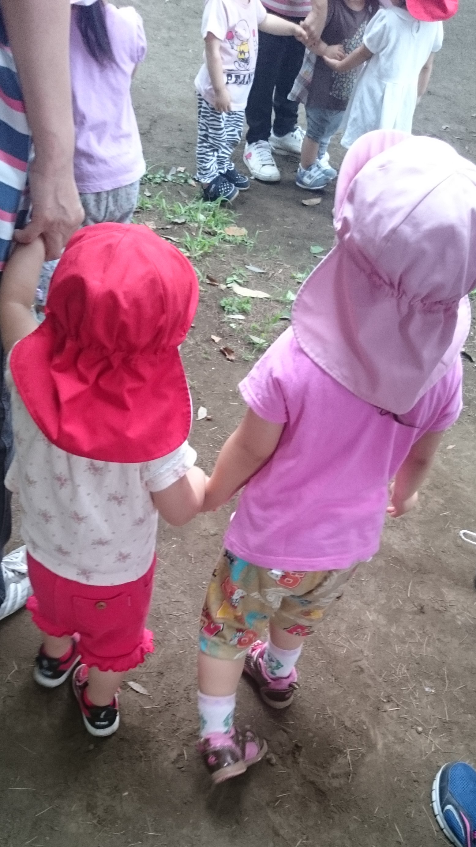 おねえさんとならつなげるかなってあえて異年齢でおててつないでみたりね(^_-)-☆