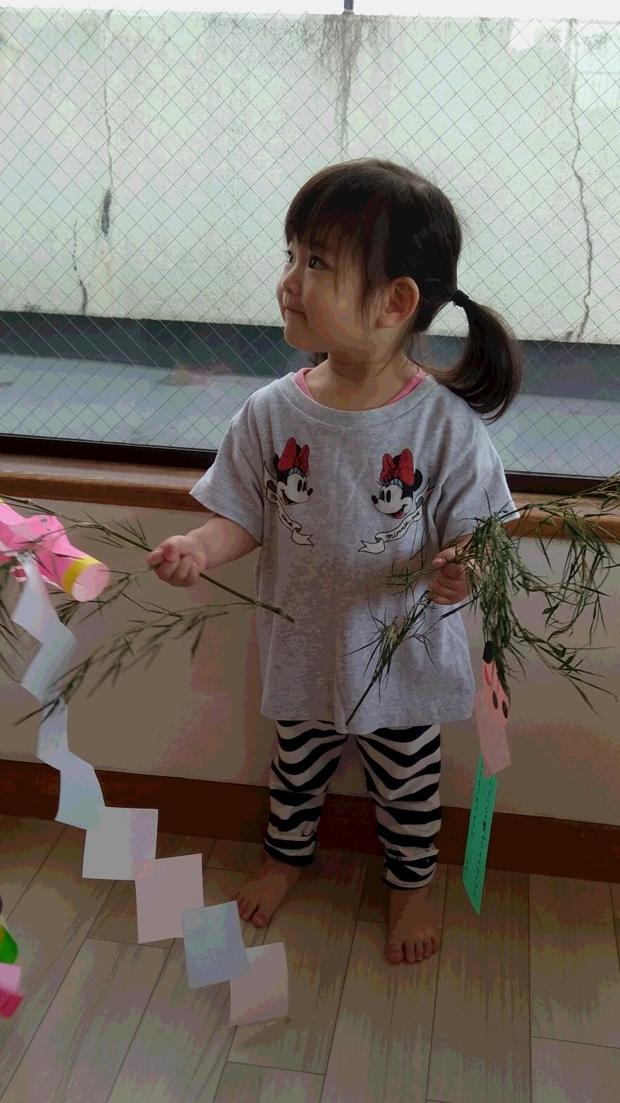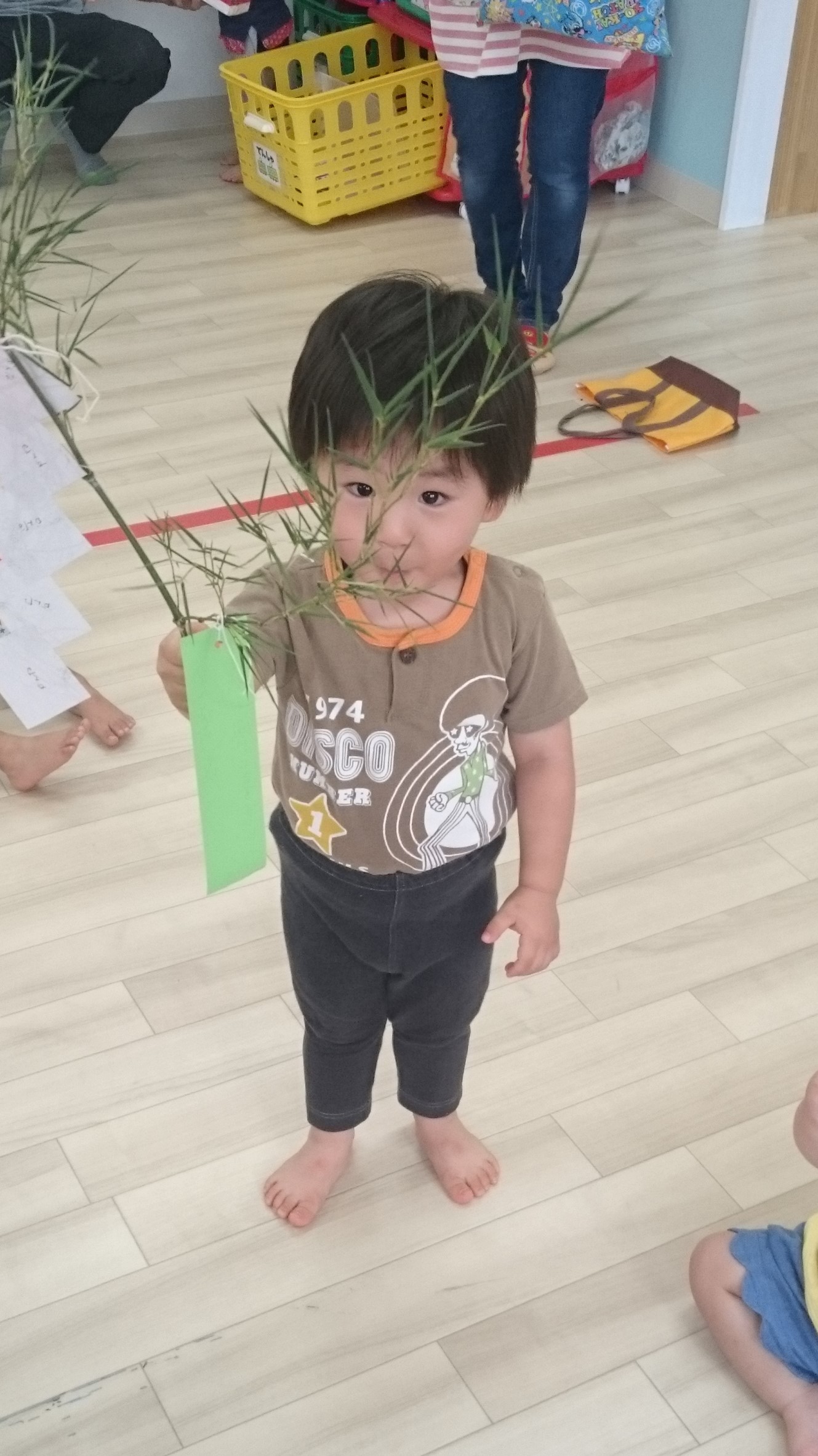 今年も卒園したお姉さんのおばあちゃまのお宅より立派な笹をお譲りいただきました。