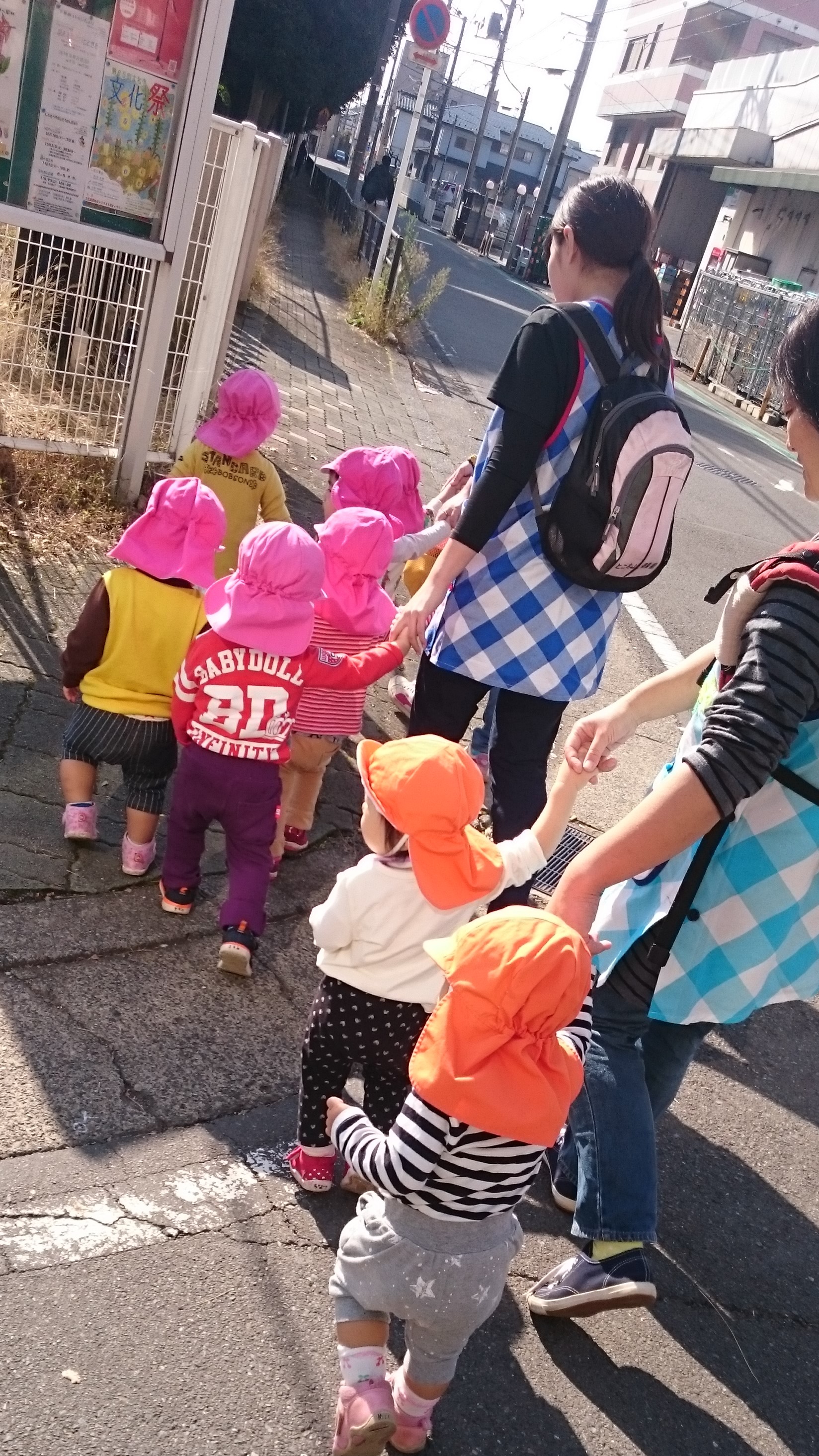 (オレンジ帽子が0歳児2人・・この日たまたま男子くんはお休みでしたがボクも歩けます!)