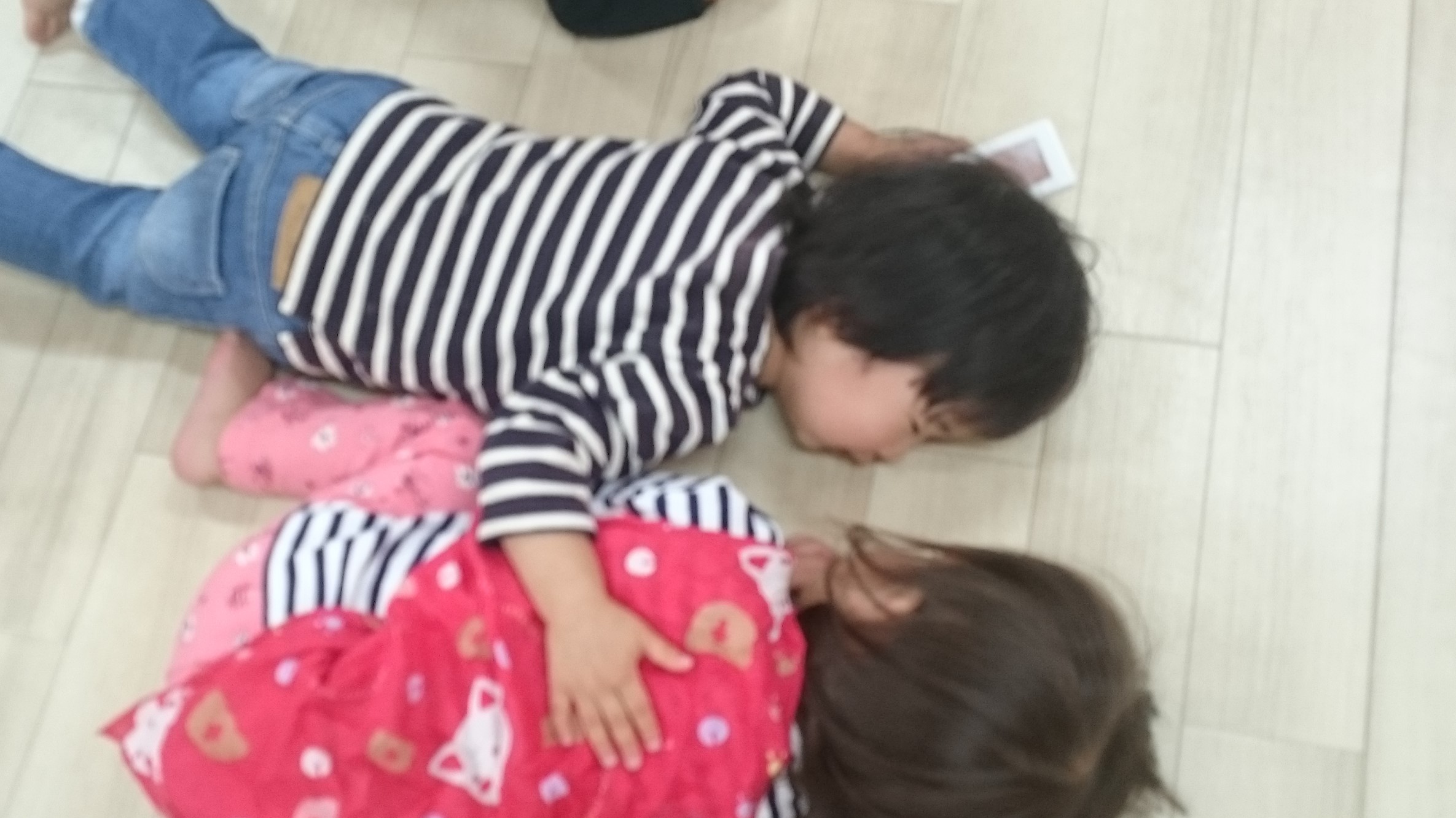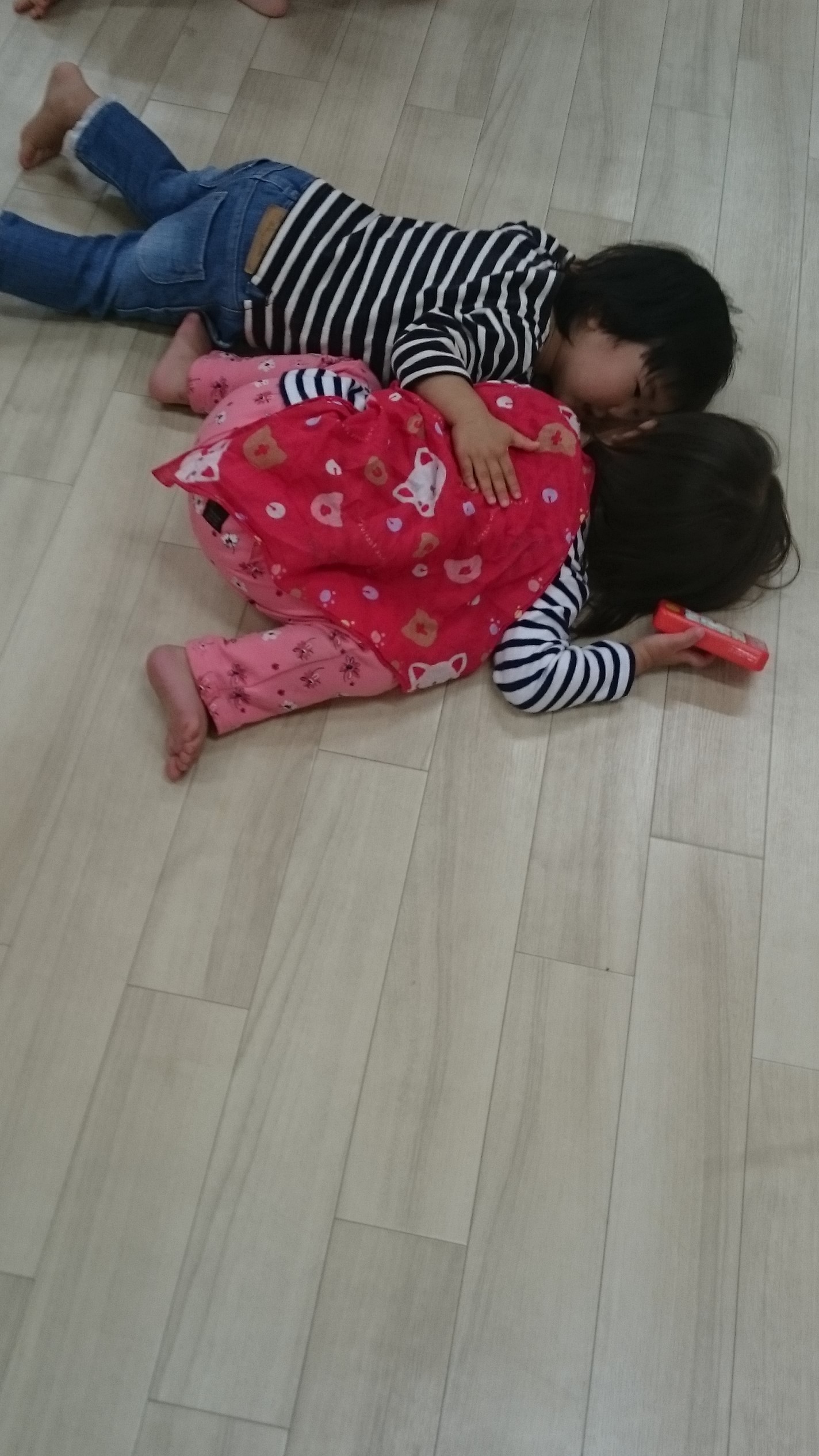 よく見ると、二人とも片手にはスマホや携帯電話のおもちゃをしっかり持っています。