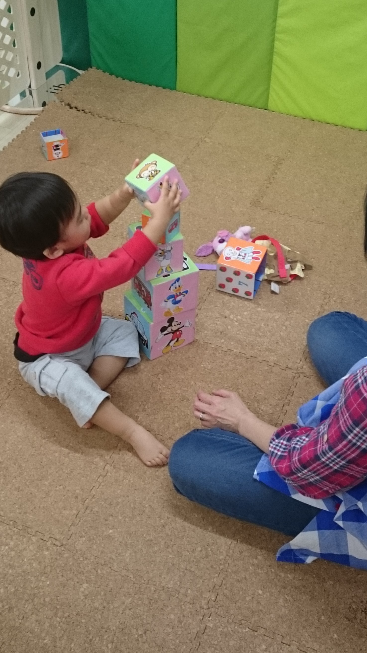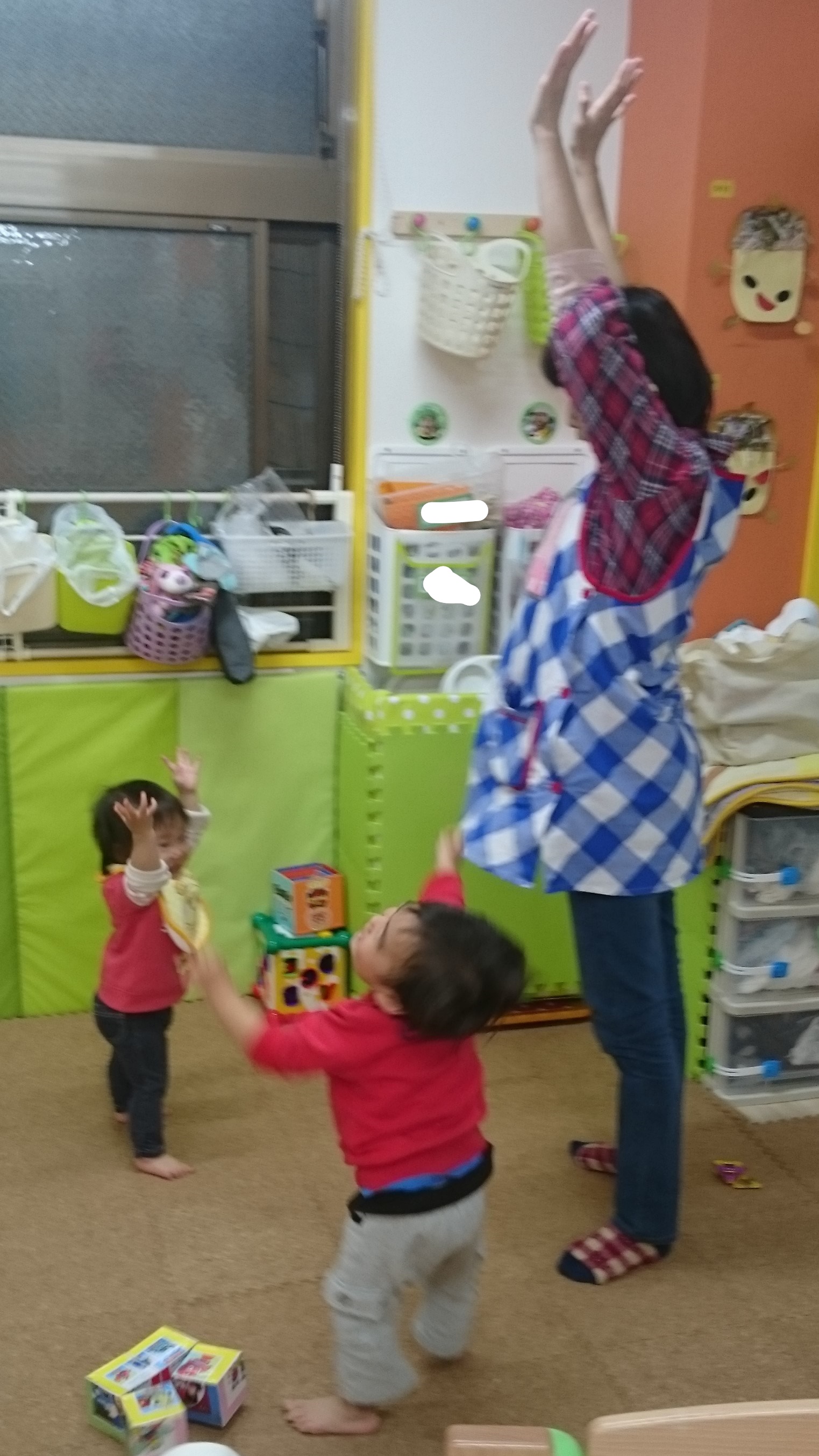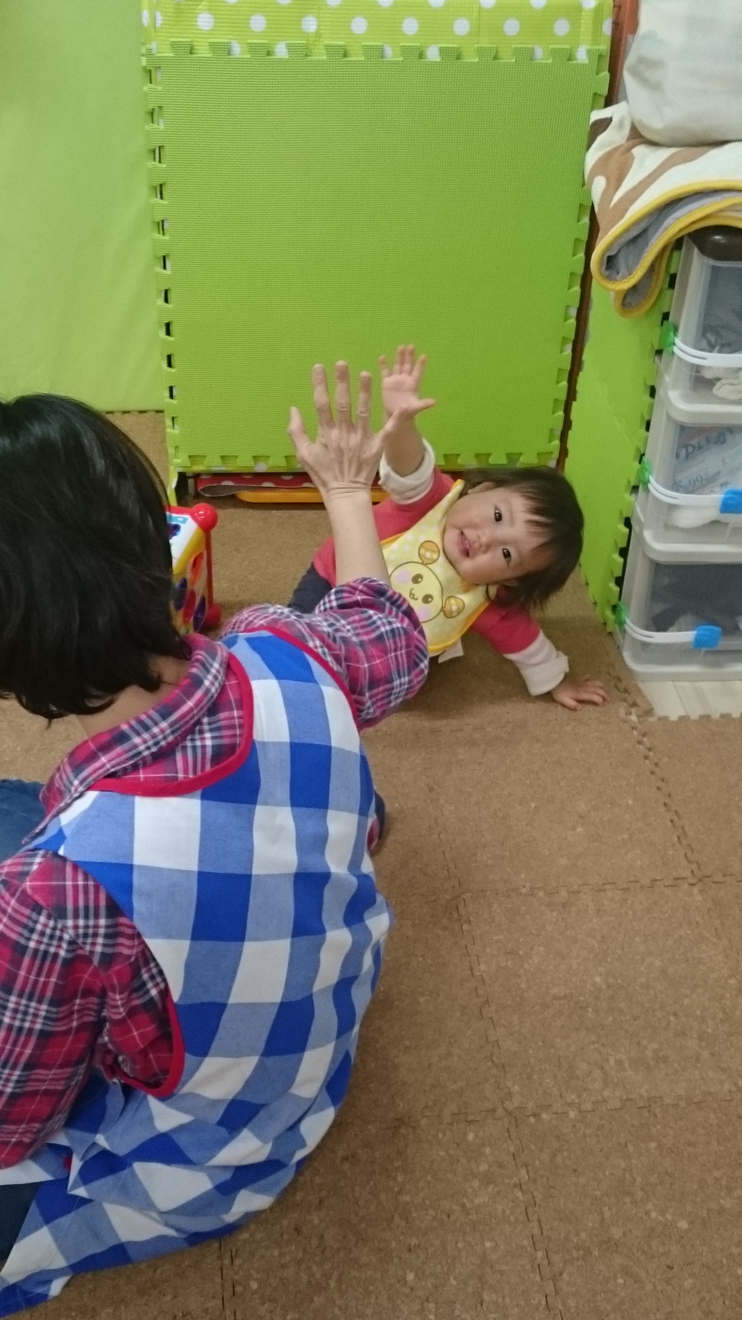 0歳児のお部屋から、楽しそうなはしゃぎ声が聞こえてきました♪