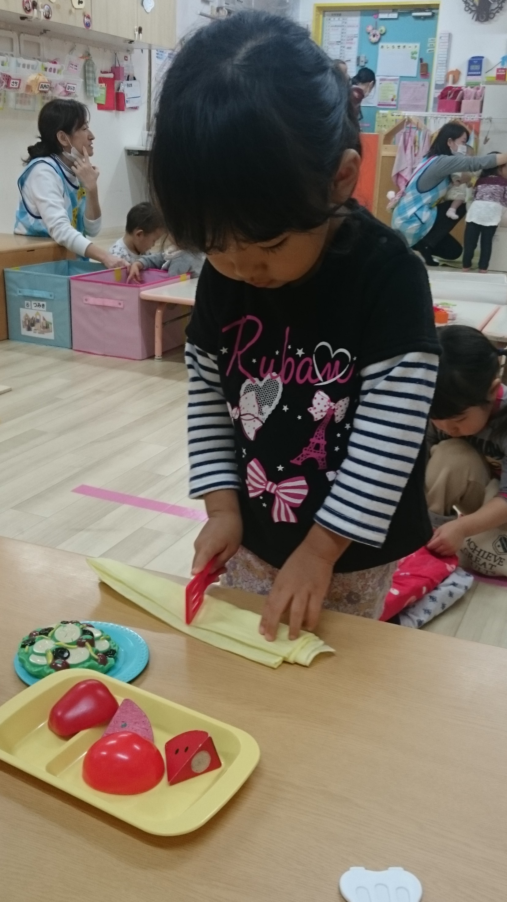 とこちゃん日記 のりまきやさん のりまきでーす! わぁ!おいしそう!! カットしま~す♪ のりまきやさん、開店です(#^^#) 関連記事新聞あそび~落ち葉がひらひら~🍂おだんごさんのハロウィン🎃♬水遊び?どろんこ遊び??ありがとうコロナ対策💦新しい仲間が増えました・・! 2017-11-30 | Posted in とこちゃん日記 | No Comments » < 収穫祭(/・ω・)/ 秋を楽しみました >