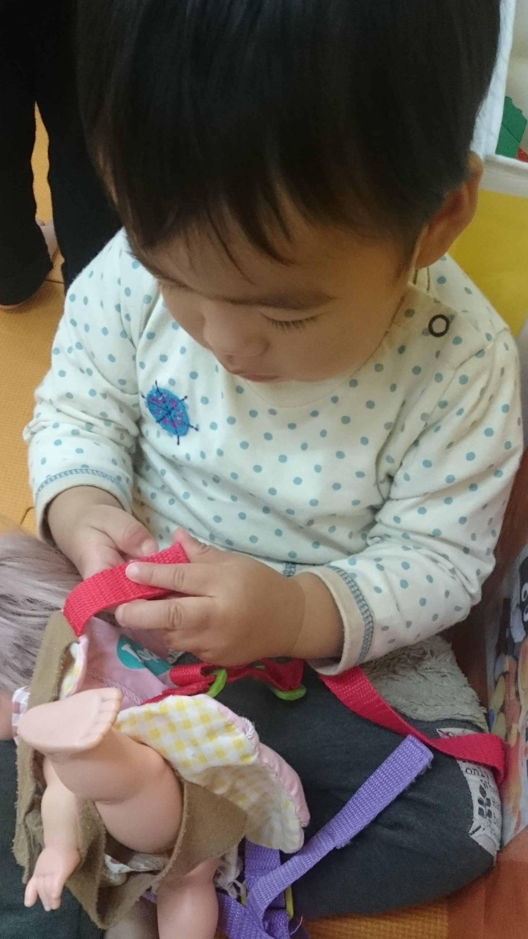 素晴らしい集中力で、指先の力加減を考えながら、もしかすると、マジックテープの原理を考えながらかなと思えるほど真剣に取り組んでいます。